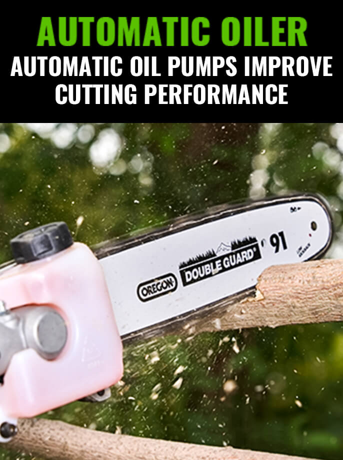 The NovorikX 60V Cordless Pole Saw features a built-in automatic oiler that keeps the 10-inch bar and chain continuously lubricated during use. By reducing friction and wear, it ensures smoother cutting performance, extends chain life, and minimizes maintenance—so you can stay focused on the job, not the upkeep.