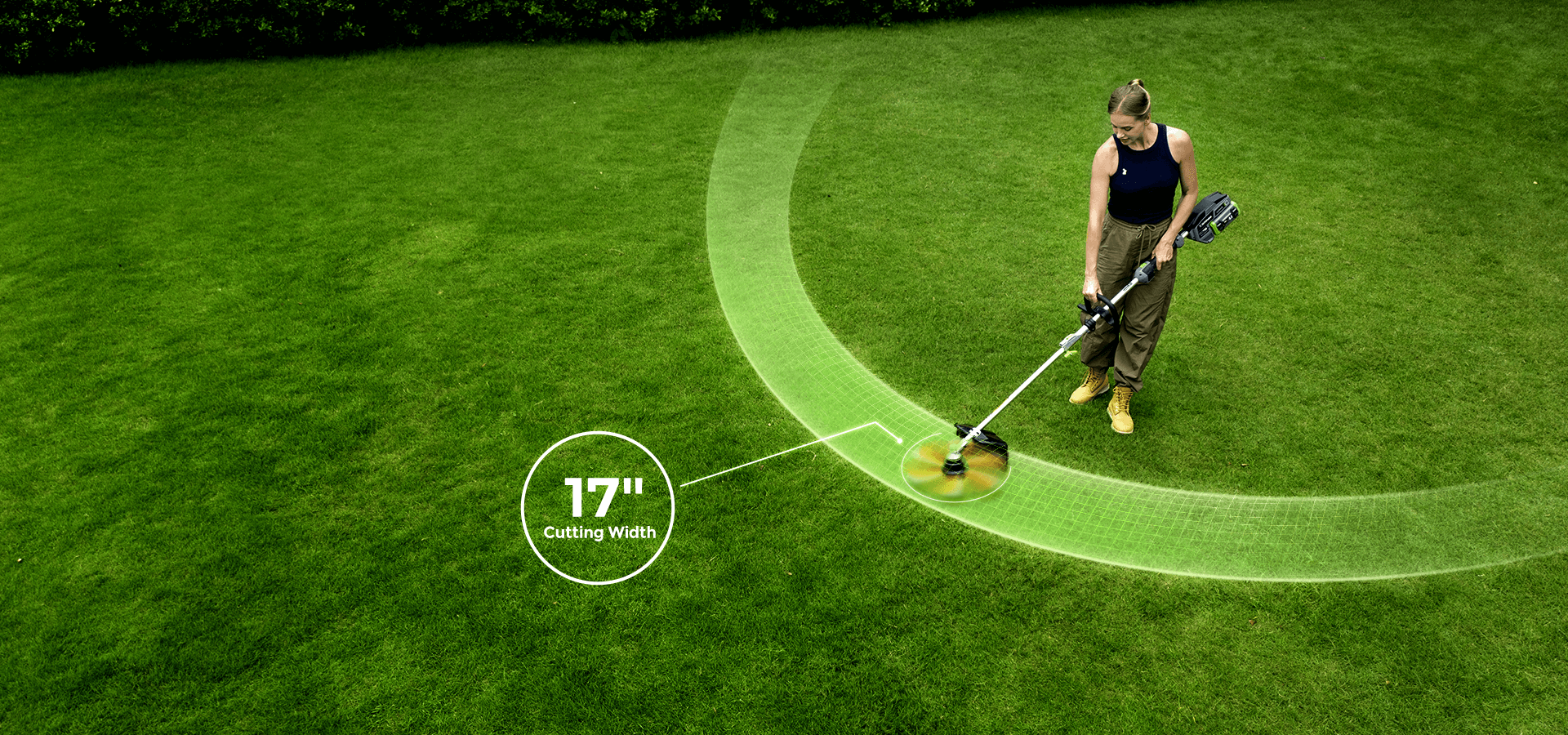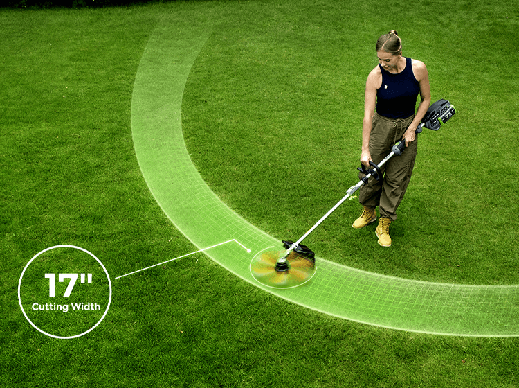 Designed for real-world landscapes, this trimmerr handles everything from tight fence lines and garden beds to slopes and gravel paths with ease. The wide 17" cutting path combined with a balanced, ergonomic design allows for precise control in tight spots and smooth sweeps across open areas—no matter the terrain.
