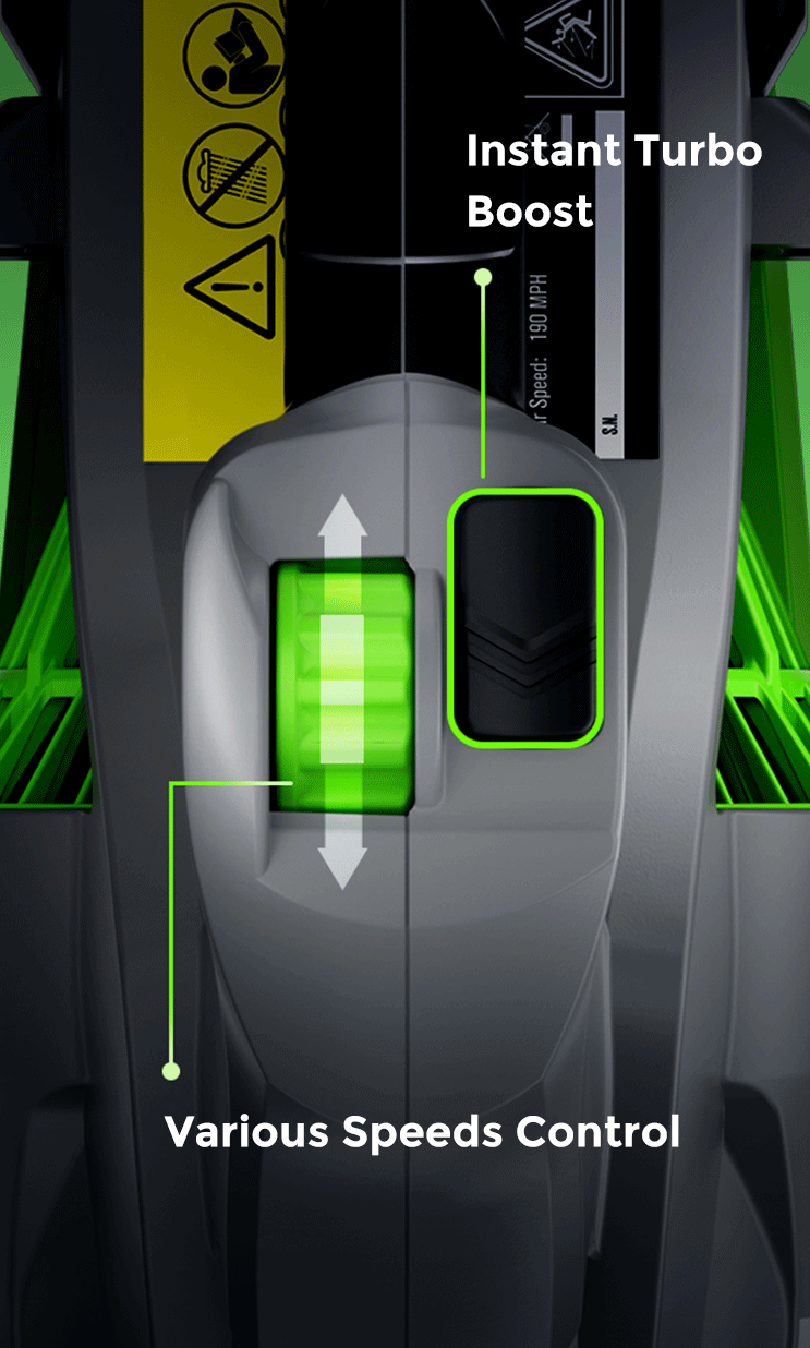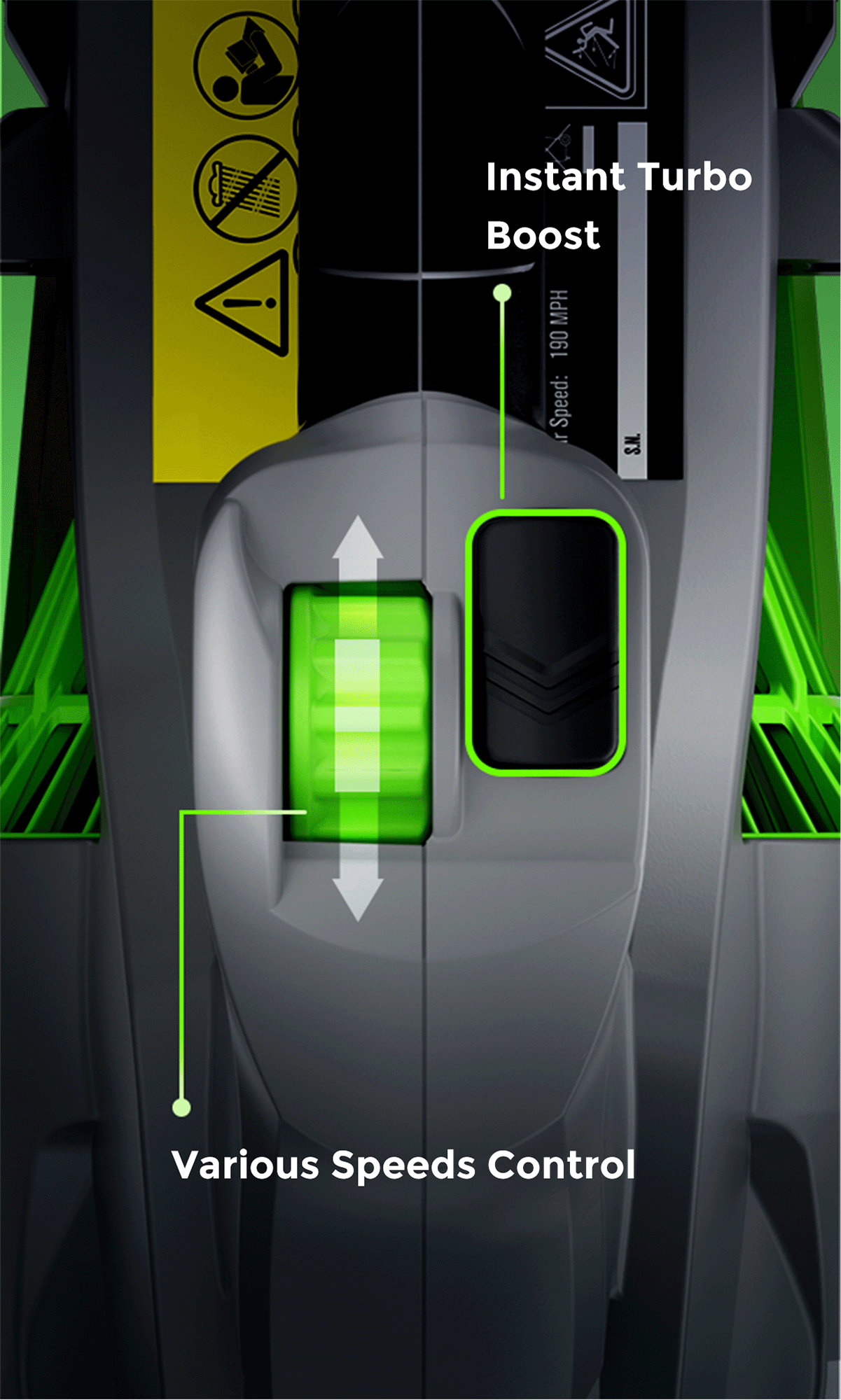 Fine-tune your airflow with the ergonomic various speeds control dial—precisely adjust from gentle Eco (gardens) to aggressive High (driveways), and tap into Turbo Mode with a single press for maximum 810 CFM airflow when clearing heavy debris or jobsite materials. Whether you're managing leaves on a lawn or dust on concrete, this intelligent speed system delivers power where and when you need it—all while preserving battery life.