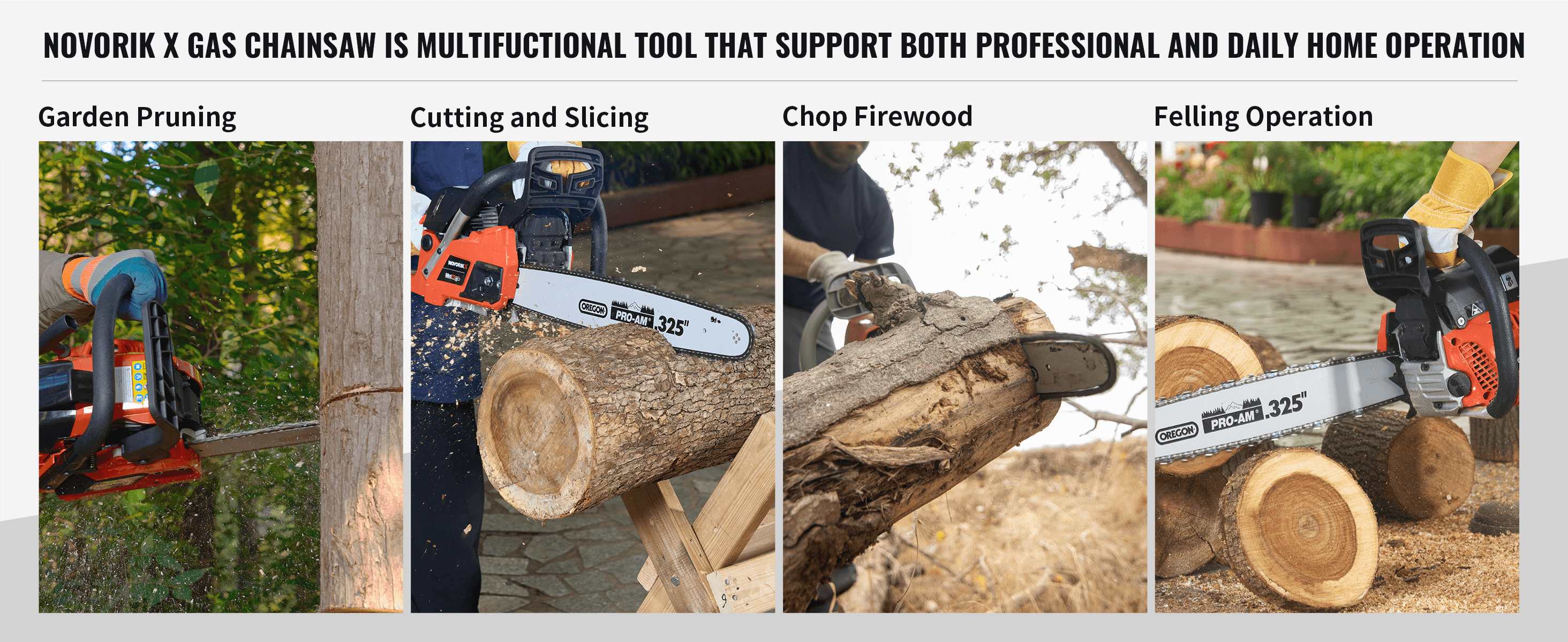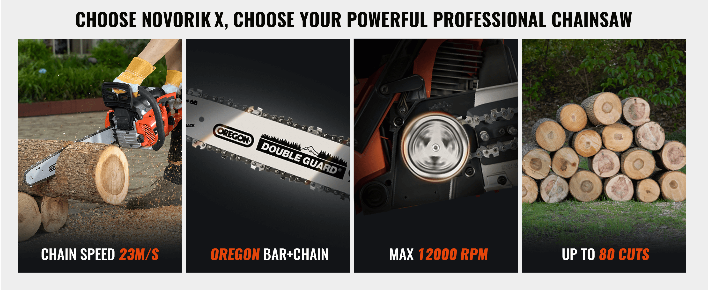 Equipped with a 50cc 2-Cycle 2.8HP engine, this gas chainsaw delivers exceptional cutting power for all your outdoor needs. With a maximum speed of 12,000 rpm and a torque of 1.5NM, it ensures efficient performance, whether you're trimming branches or cutting logs. The lightweight design adds to its versatility, making it perfect for home and professional use.